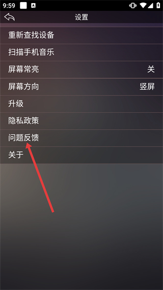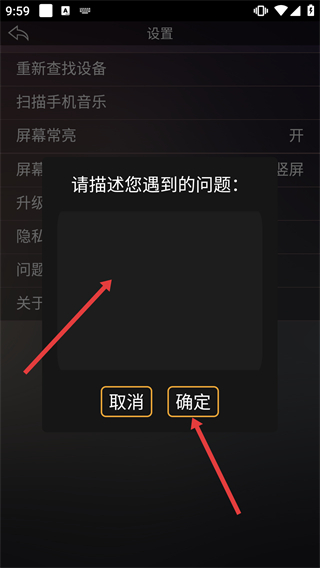 3、在“設置”頁面找到“問題反饋”選項并點擊,觸發(fā)“請描述您遇到的問題”的輸入彈窗。