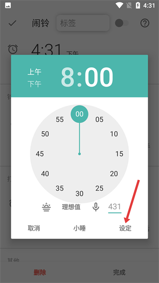 3、在時(shí)間設(shè)置界面,選擇目標(biāo)時(shí)間(如上午8:00)后,點(diǎn)擊【設(shè)定】按鈕確認(rèn)時(shí)間選擇。