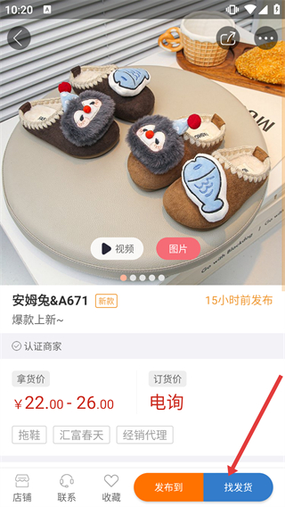 3、在商品詳情頁面,點擊底部的【找發(fā)貨】按鈕,彈出訂單相關(guān)的操作選項菜單。