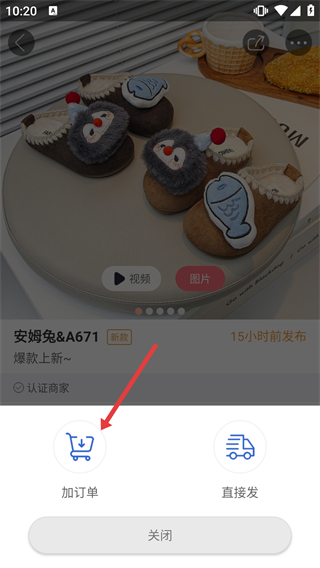 4、在彈出的操作選項中,選擇【加訂單】選項,即可發(fā)起該商品的訂單創(chuàng)建流程。