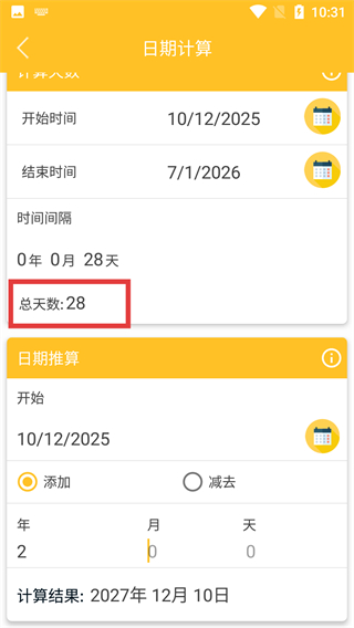 4、完成時間選擇后,頁面將自動計算并展示開始與結(jié)束時間的間隔天數(shù)、時間間隔等結(jié)果信息。