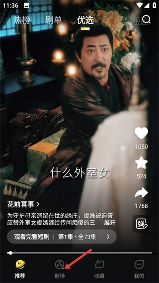 1、在“推薦”頁面,點(diǎn)擊底部的“劇場(chǎng)”按鈕,進(jìn)入短劇的分類聚合頁面,可查看不同類型的短劇內(nèi)容。