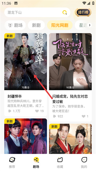 2、在劇場(chǎng)頁面的“陽光網(wǎng)劇”分類下,選擇目標(biāo)短劇,點(diǎn)擊進(jìn)入該短劇的播放頁面。