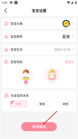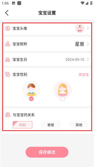 3、信息修改完成后,點(diǎn)擊“保存修改”按鈕,確認(rèn)并保存已調(diào)整的寶寶信息。