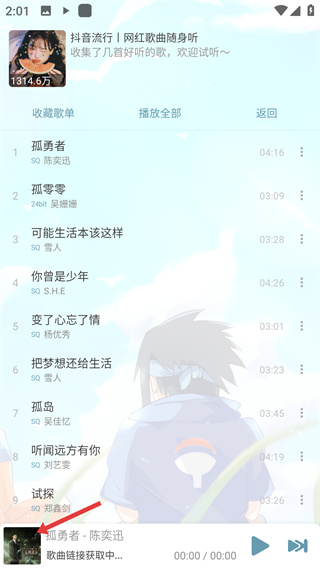 2、在歌單詳情頁面,選定目標(biāo)歌曲,點(diǎn)擊該歌曲啟動播放流程,底部播放欄會同步顯示歌曲的加載狀態(tài)。