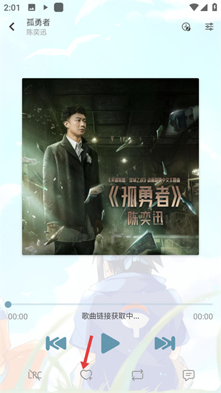 4、在全屏播放頁面,點(diǎn)擊底部的愛心圖標(biāo),即可將歌曲添加至收藏列表,便于后續(xù)快速訪問該歌曲。