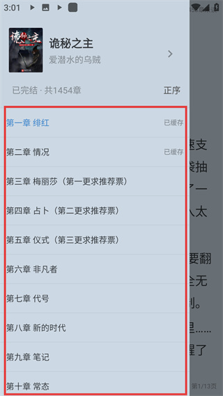 4、在【詭秘之主】的章節(jié)列表里,可查看已緩存的各章節(jié),能直接選擇目標(biāo)章節(jié)進(jìn)行閱讀。