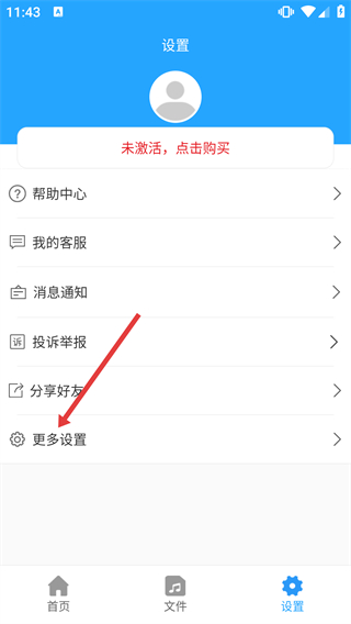 2、在設(shè)置頁面,點擊“更多設(shè)置”選項,進入更多設(shè)置的詳情頁面,可進行系統(tǒng)權(quán)限管理、協(xié)議查看、緩存清理等操作。