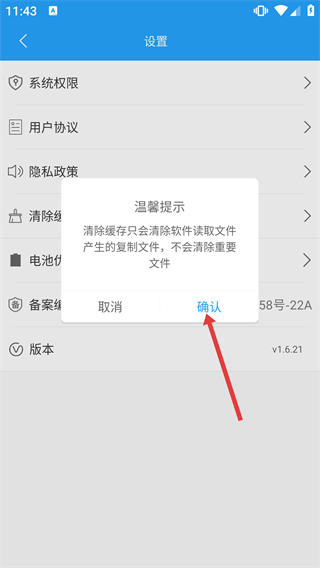 4、在溫馨提示彈窗中,點擊“確認”按鈕,完成應(yīng)用緩存的清理操作。