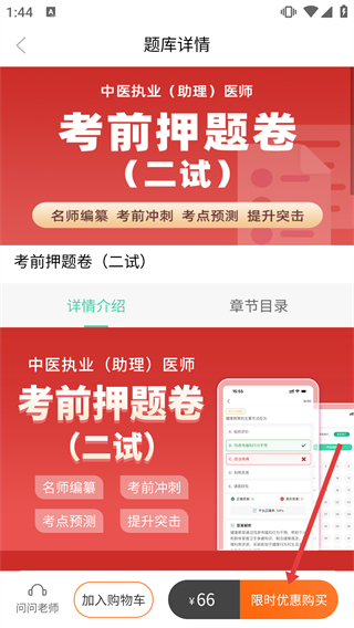 4、在試題詳情頁(yè),了解相關(guān)信息后,可點(diǎn)擊【限時(shí)優(yōu)惠購(gòu)買】獲取。
