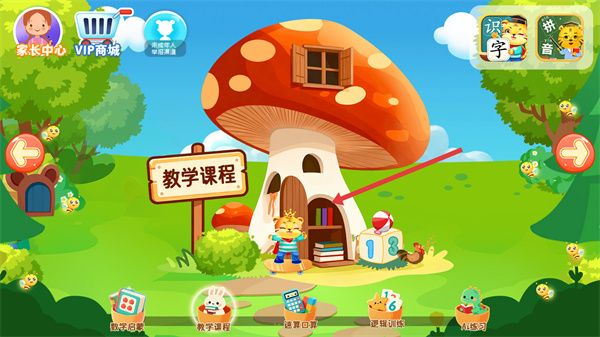 1、進(jìn)入應(yīng)用的數(shù)學(xué)啟蒙界面,點(diǎn)擊底部的【教學(xué)課程】選項(xiàng),切換到教學(xué)課程對(duì)應(yīng)的頁面。