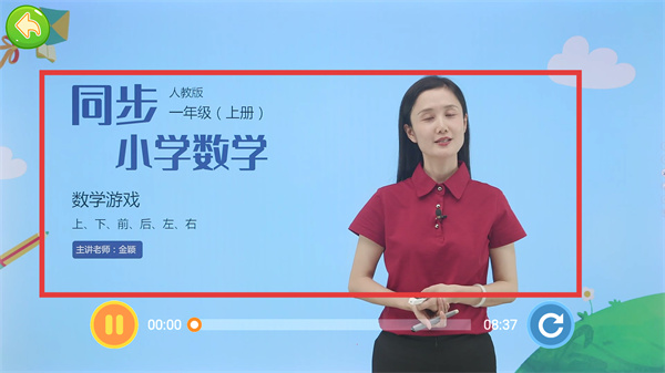 4、進(jìn)入數(shù)學(xué)游戲的課程播放頁,該課程同步人教版一年級(jí)上冊(cè)內(nèi)容,可觀看學(xué)習(xí)“上、下、前、后、左、右”相關(guān)知識(shí)。