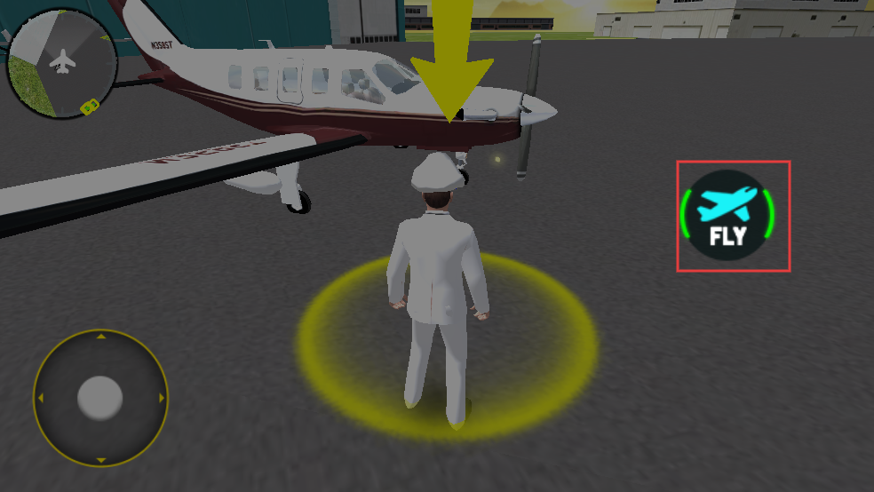 3、當(dāng)角色到達飛機旁的黃色光圈內(nèi),點擊右側(cè)帶有飛機圖標(biāo)的“FLY”按鈕,即可完成任務(wù)目標(biāo)。