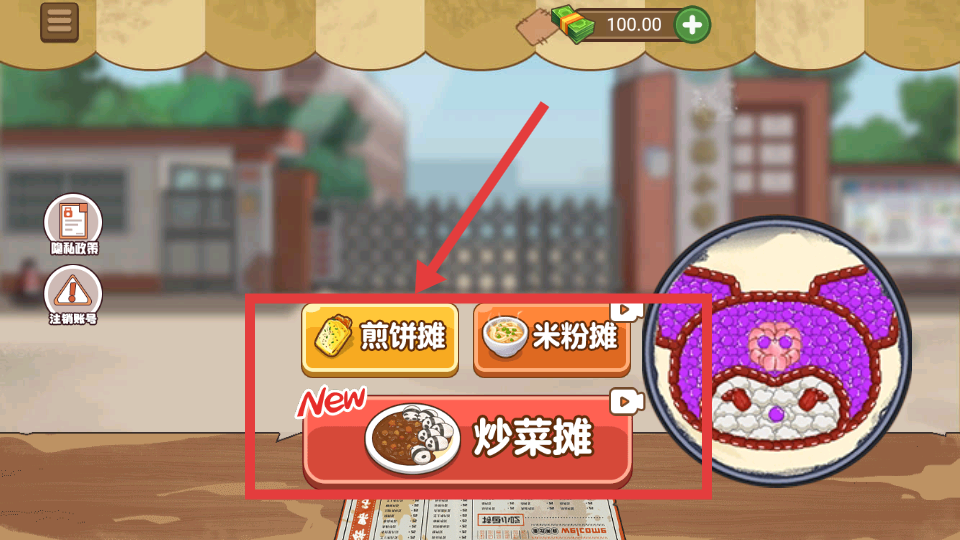 1、進(jìn)入游戲,選擇【煎餅攤】,開啟煎餅制作的經(jīng)營之旅,準(zhǔn)備迎接顧客訂單啦。