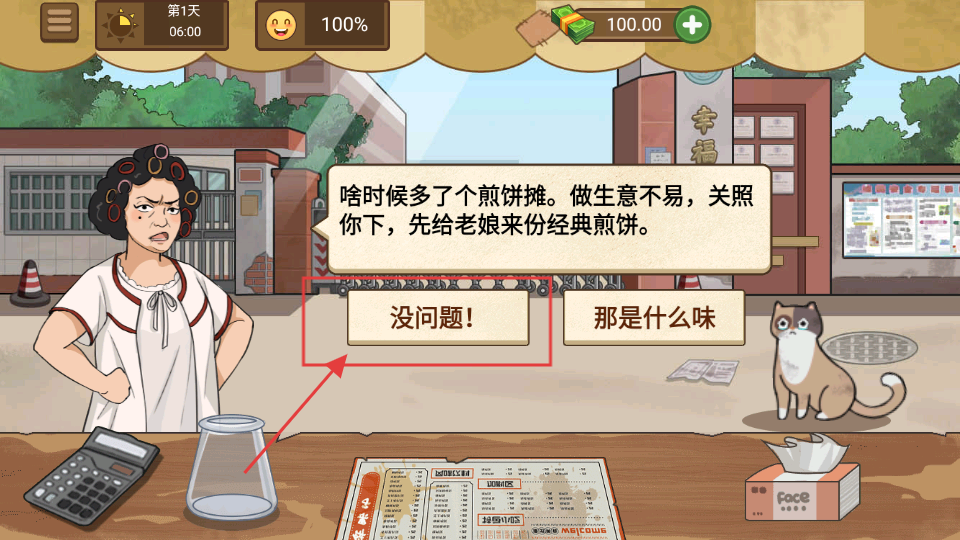 2、接到顧客要經(jīng)典煎餅的訂單,點(diǎn)擊【沒問題!】,確認(rèn)訂單,開始制作煎餅哦。