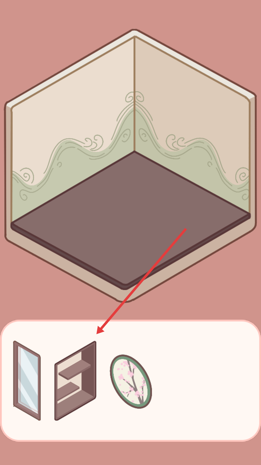 1、在初始界面,選擇下方的家具或裝飾部件,開始布置房間。