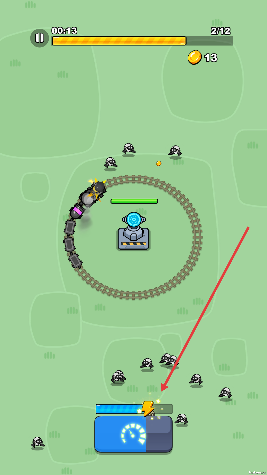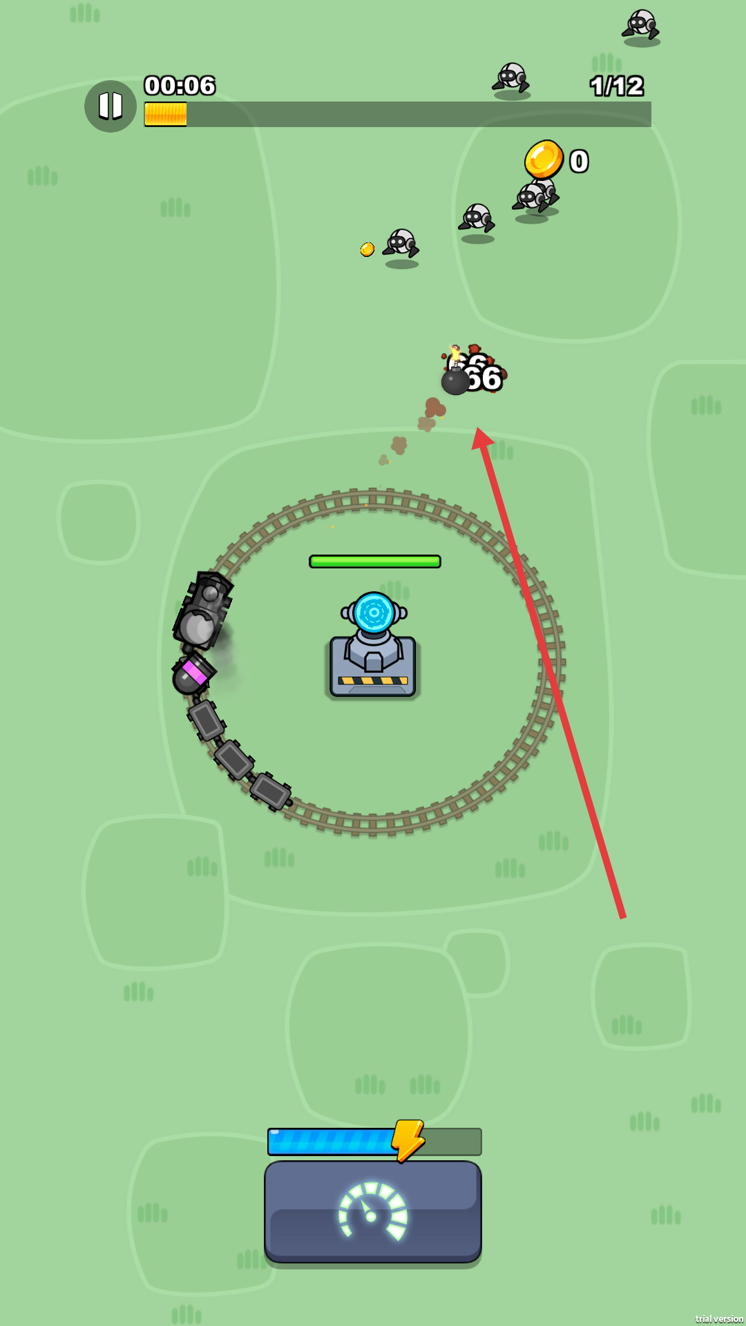 2、點(diǎn)擊下方帶閃電圖標(biāo)的能量槽區(qū)域,為火車充能,提升移動(dòng)效率。