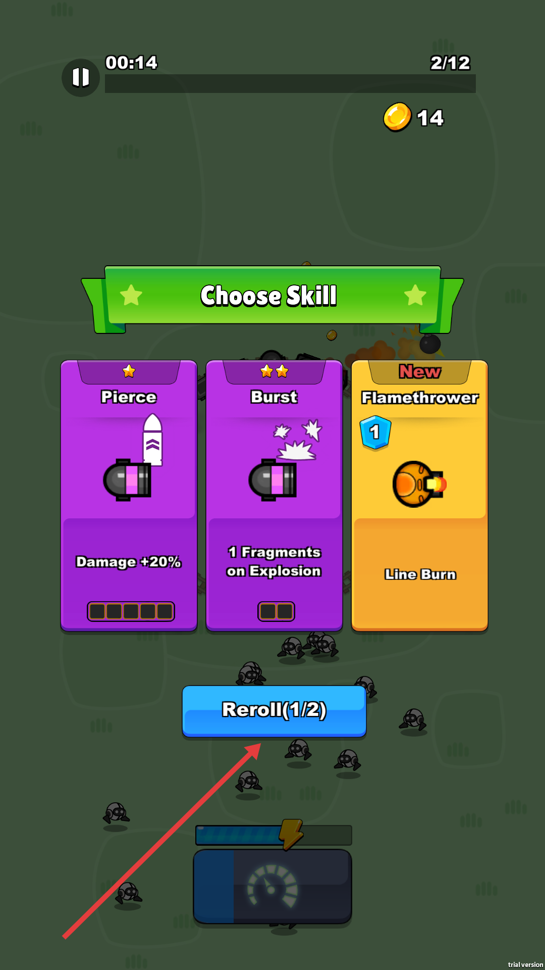 4、若對(duì)技能不滿,點(diǎn)擊【Reroll】按鈕刷新技能列表,重新選合適技能助力戰(zhàn)斗。