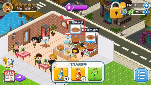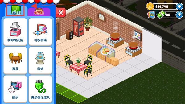 4、通過【商店】的【咖啡館設(shè)備】選項升級廚具,提升制作效率,支撐更大規(guī)模的顧客接待。
