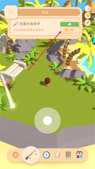 1、查看目標任務,明確需招募釣魚助手,準備前往南岸。