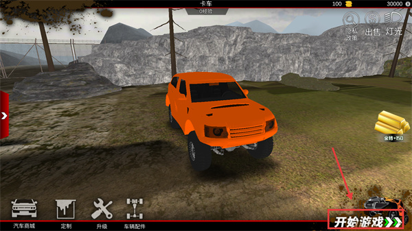 1、進(jìn)入界面后,先通過(guò)【汽車商城】-【定制】-【升級(jí)】-【車輛配件】?jī)?yōu)化車輛,再點(diǎn)擊【開(kāi)始游戲】進(jìn)入關(guān)卡。
