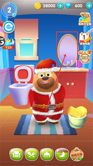 1、在主界面點(diǎn)擊【淋浴圖標(biāo)】按鈕,進(jìn)入浴室場(chǎng)景完成清潔互動(dòng)任務(wù)。