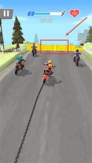 2、遇到【黃色加速帶】時需及時駛入,借助其提升速度,縮小與前方對手的差距以提升名次。