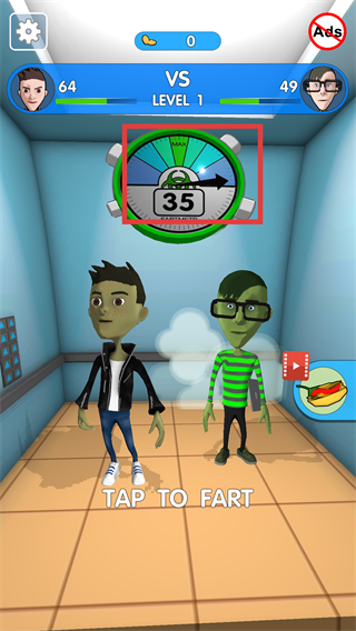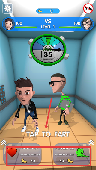 1、開局點擊【TAP-TO-FART】釋放技能,可先花費50金幣提升能力。