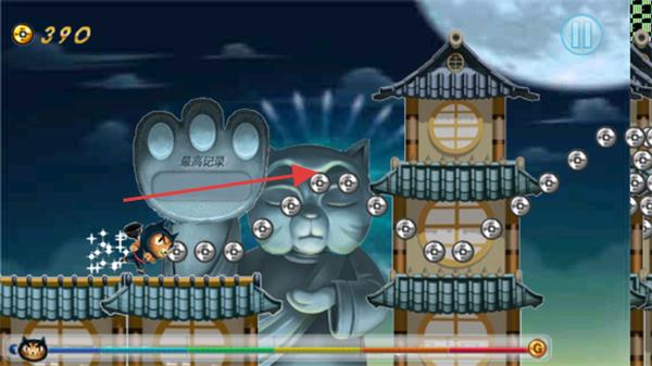 1、操控忍者貓移動(dòng),安裝提示往下移動(dòng),使其有更高分?jǐn)?shù)。
