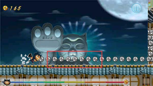 1、高速奔跑機(jī)制貫穿全程,忍者貓的移動(dòng)速度會(huì)隨關(guān)卡推進(jìn)不斷提升,對(duì)玩家的反應(yīng)速度和操作精準(zhǔn)度的要求逐步提高。