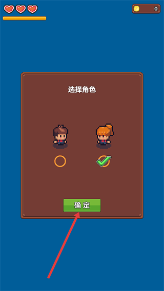 1、在【選擇角色】界面,選定想要的角色后,點擊下方的【確定】按鈕,即可進入游戲。