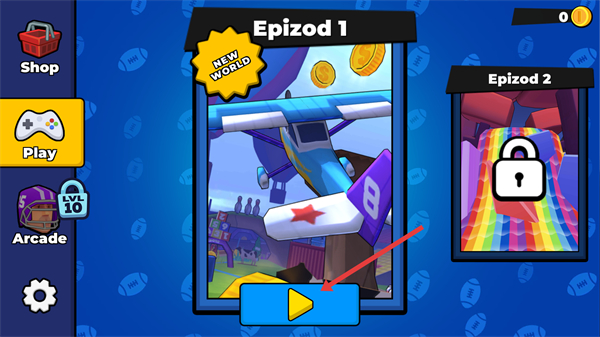 1、在主界面點(diǎn)擊【Epizod-1】下方的播放按鈕,進(jìn)入關(guān)卡,開啟橄欖球沖鋒挑戰(zhàn)。