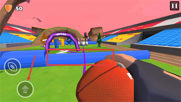 2、在關(guān)卡中,通過下方的【向上按鈕】操控橄欖球移動,穿過【SPORT】拱門等障礙區(qū)域。
